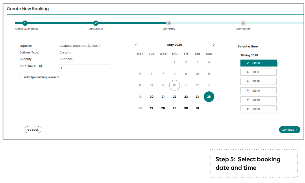 Once you have selected the date and time and declared the number of units, click continue, where it will ask you to confirm your booking. Confirm it, and you will see the details of your booking finalised:
